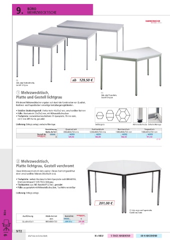 Rechteck- und Trapeztischen vielseitige Gestaltungsmöglichkeiten.