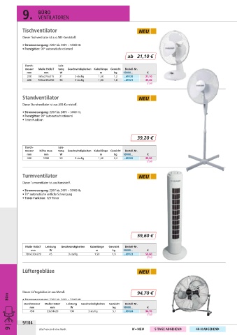 9 | Alle Preise in € ohne MwSt. N = NEU 5 TAGE ABGEHEND 48-H ABGEHEND