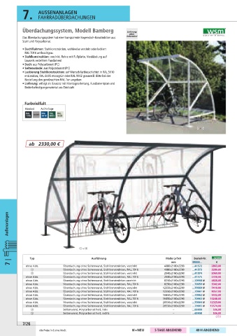 ohne Abb. Überdachung ohne Seitenwand, Stahlkonstruktion, RAL 7016 20550x2100x2290 ...70965 N 13574,00