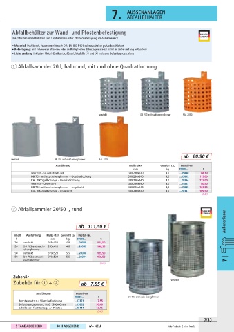 1 Abfallsammler 20 l, halbrund, mit und ohne Quadratlochung