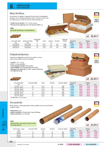 Innenmaß LxBxH Außenmaß LxBxH DIN Farbe Gewicht VE/Stück Palette Bestell-Nr. €/Paket