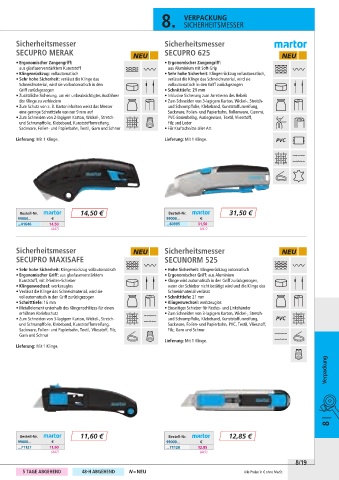 • Sehr hohe Sicherheit: Klingenrückzug vollautomatisch • Hohe Sicherheit: Klingenrückzug automatisch