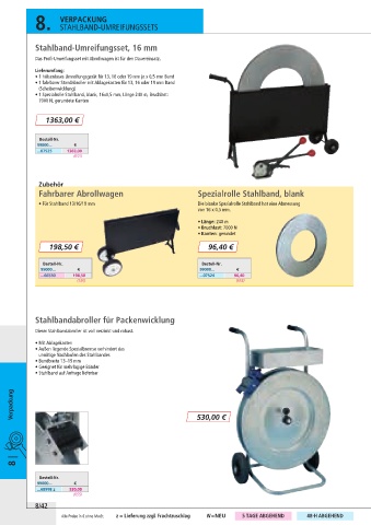 • 1 fahrbarer Standabroller mit Ablagekasten für 13, 16 oder 19 mm Band