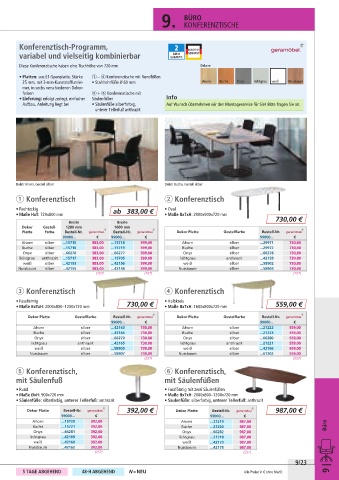 • Platten: aus E1-Spanplatte, Stärke 1 – 4 Konferenztische mit Rundfüßen