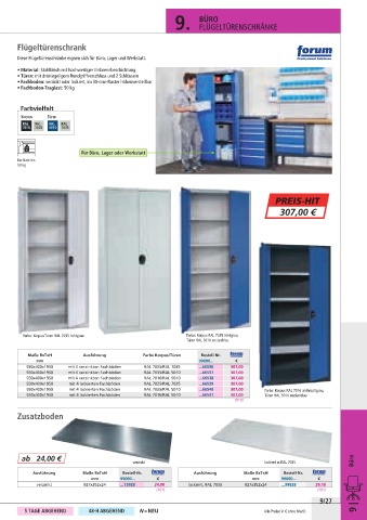 930x400x1950 mit 4 lackierten Fachböden RAL 7016/RAL 5010 ...66541 307,00 Türen RAL 5010 enzianblau