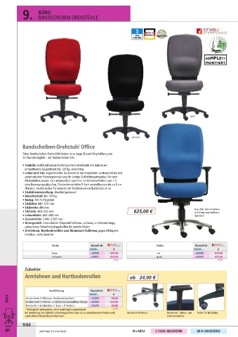 • Armlehnen, Hartbodenrollen und Aluminium-Fußkreuz gegen Mehrpreis
