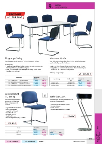 1 Tisch 1400x800 mm + 6 Schwinger blau ...61565 961,50 Quadrattisch 800x800x720 ...08133 319,00