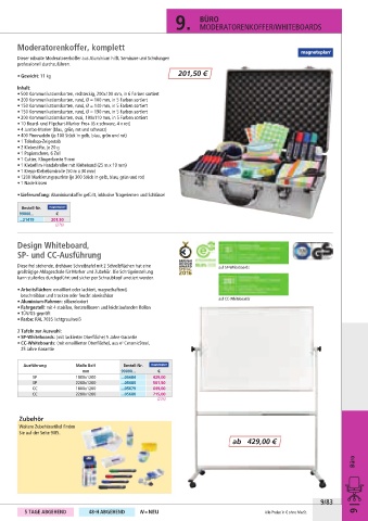 • Aluminium-Rahmen: silbereloxiert auf CC-Whiteboards
