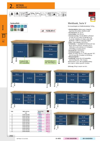 Betrieb RAL RAL RAL RAL RAL Die Gesamttraglast der Werkbänke beträgt 1500 kg.