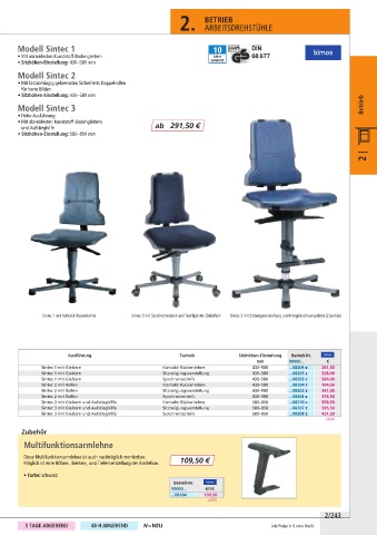 Sintec 2 mit Rollen                   Sitzneigungsverstellung      430– 580   ...08202 z     341,00