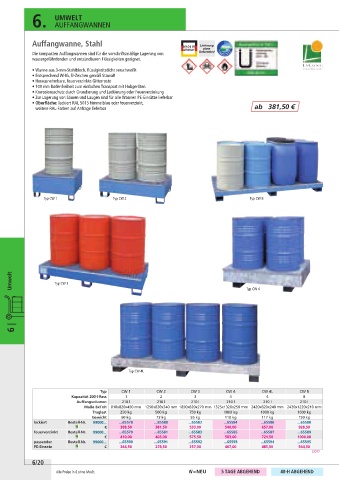 • Zur Lagerung von Säuren und Laugen sind für alle Wannen PE-Einsätze lieferbar
