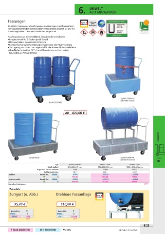 Die stabilen Fasswagen mit Auffangwanne sind zum Lagern und Transportieren