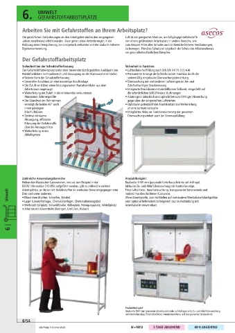 Der Gefahrstoffarbeitsplatz bietet dem Anwender durch gezieltes Ausblasen von • Lufttechnische Prüfung nach DIN EN 14175-3 (5.4.4)
