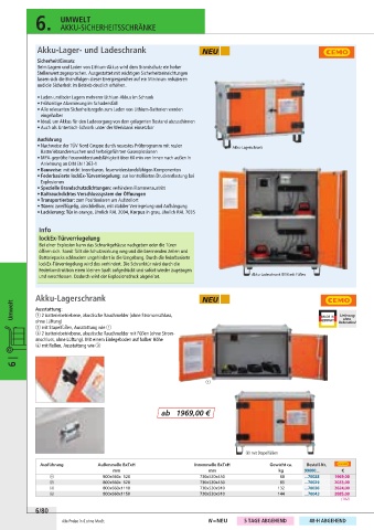 und verschlossen. Dadurch wird der Explosionsdruck abgeleitet. Akku-Ladeschrank 8/10 mit Füßen