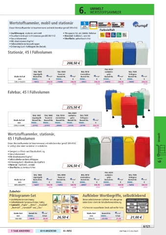 • Selbstklebende Symbolaufkleber, farbig deten Ecken dient der Behälterkennzeichnung.