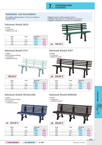Die wetterfesten Ruhebänke können im Innen- wie Außenbereich • Material: Kunststoff, Mehrkammerprofile 50x30 mm