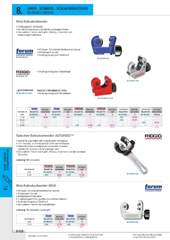 für Rohr-Ø Bestell-Nr. schneider Bestell-Nr. rad Bestell-Nr. schneider Bestell-Nr. rad Bestell-Nr. schneider Bestell-Nr. Schneidrad