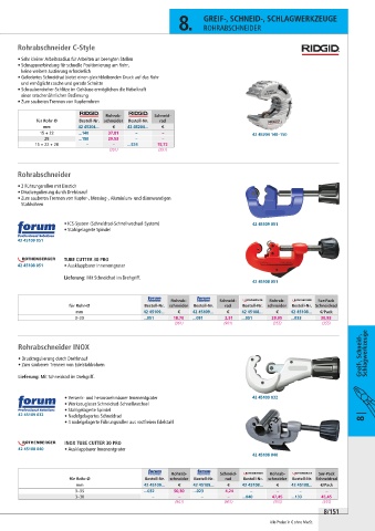 für Rohr-Ø Bestell-Nr. schneider Bestell-Nr. rad Bestell-Nr. schneider Bestell-Nr. Schneidrad