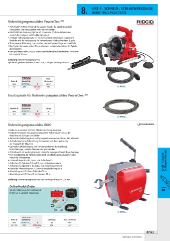• Arbeitslänge mit Ø 10 und 8 mm Spiralen 10 m