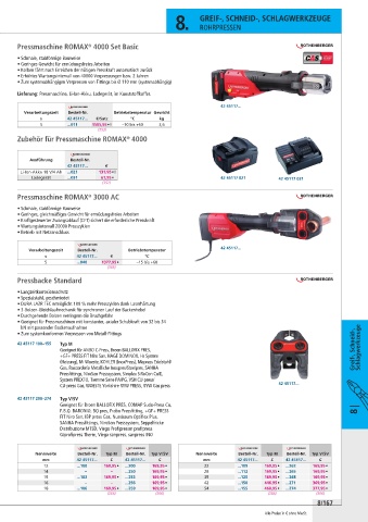 Lieferung: Pressmaschine, Li-Ion-Akku, Ladegerät, im Kunststoffkoffer.