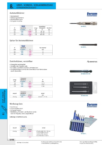 Greif-, Schneid-, Schlagwerkzeuge Anzahl 42 46326... 156,26 6– 8; 8– 11; 11– 16 42 46326 050