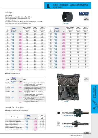 11-teilig ...103 73,00 8 Lochsägen 16; 19; 24; 29; 38; 44; 57; 67 mm