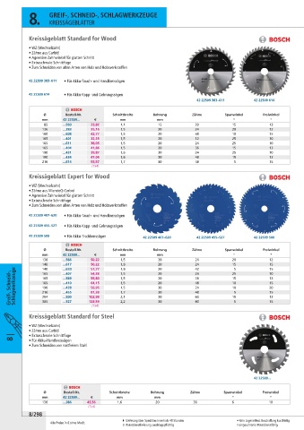 Ø Bestell-Nr. Schnittbreite Bohrung Zähne Spanwinkel Freiwinkel