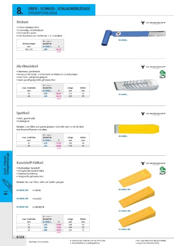 Hinweis: Zum Fällen und Spalten geeignet. Stahlkeile stets nur mit Hartholz-