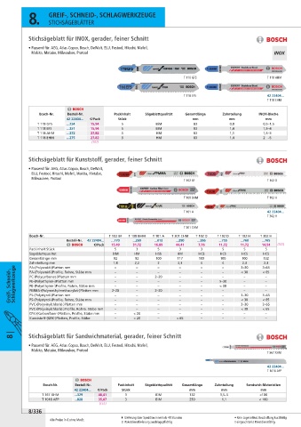 Bosch-Nr. Bestell-Nr. Packinhalt Sägeblattqualität Gesamtlänge Zahnteilung INOX-Bleche