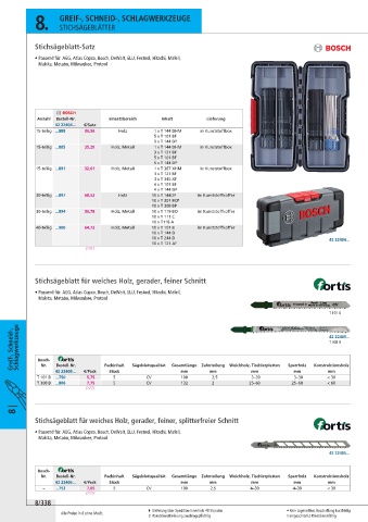 42 22405... €/Pack Packinhalt Sägeblattqualität Gesamtlänge Zahnteilung Weichholz, Tischlerplatten Sperrholz Konstruktionsholz