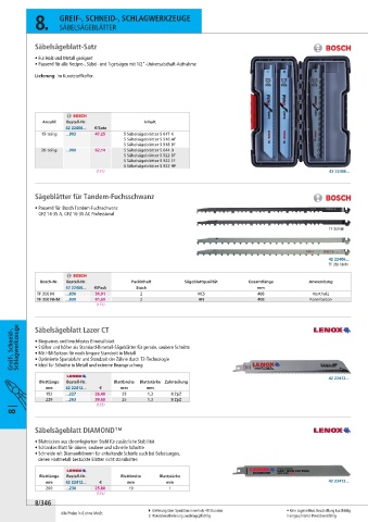 Bosch-Nr. Bestell-Nr. Packinhalt Sägeblattqualität Gesamtlänge Anwendung