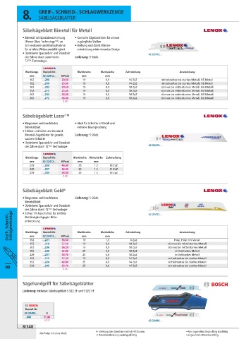 Greif-, Schneid-, Schlagwerkzeuge entwicklung Bestell-Nr. Blattbreite Blattstärke Zahnteilung Anwendung