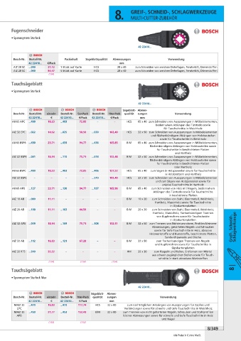 Bosch-Nr. Bestell-Nr. Pack inhalt Sägeblattqualität Abmessungen Verwendung