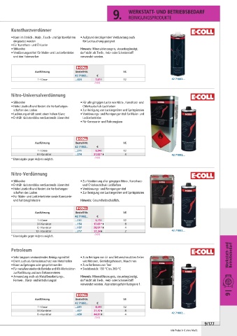 • Lackierung erhält somit einen hohen Glanz • Verdünnungs- und Reinigungsmittel für Maler- und