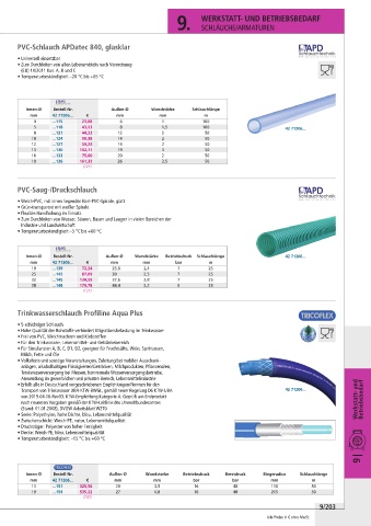 Innen-Ø Bestell-Nr. Außen-Ø Wandstärke Betriebsdruck Schlauchlänge 42 71206...