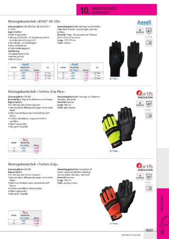 Zulassung/Norm: EN 388 Anwendungsbereiche: Montage von Kleinteilen,