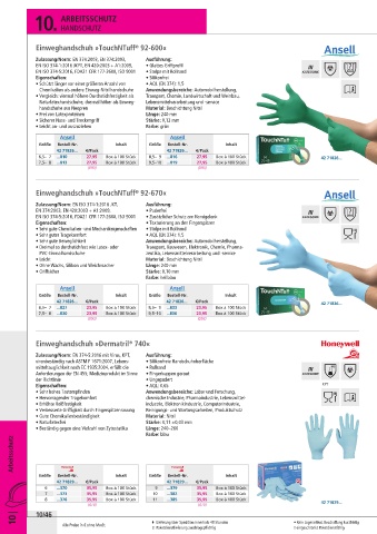 EN 374:2003, EN 420:2003 + A1:2009, • Puderfrei