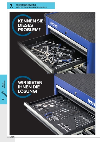 7. SCHRAUBWERKZEUGE WERKSTATTWAGEN/WERKZEUGMODULE KENNEN SIE DIESES PROBLEM? Schraub- werkzeuge WIR BIETEN IHNEN DIE LÖSUNG! 7 | 7/128