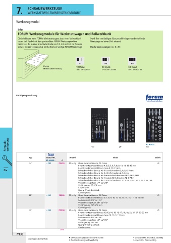 stehen. Die Werkzeugmodule beinhalten hochwertige FORUM Werkzeuge. Modul-Abmessungen (L x B x H):