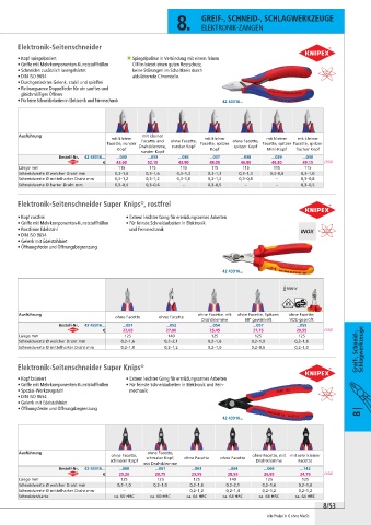 Schneidwerte Ø mittelharter Draht mm 0,2– 1,0 0,2– 1,2 0,2– 1,0 0,2– 0,6 0,2– 1,0 Greif-, Schneid-, Schlagwerkzeuge