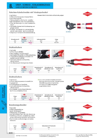 Greif-, Schneid-, Schlagwerkzeuge • Zum Schneiden von hochfesten Drahtseilen Schneidwerte Ø Schneidwerte Ø Schneidwerte Ø 42 43320...