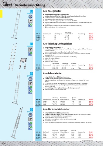 Art.-Nr. Sprossenzahl min. - max. m Arbeitshöhe m verse m Gewicht kg Preis €