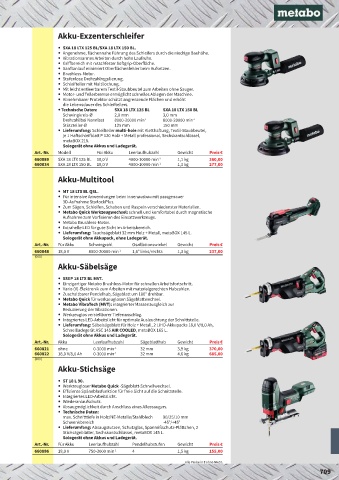 Art.-Nr. Akku Leerlaufhubzahl Sägeblatthub Gewicht Preis €