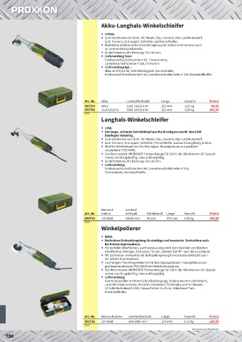 Art.-Nr. Akku Leerlaufdrehzahl Länge Gewicht Preis €
