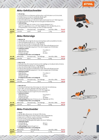 Art.-Nr. Akkusystem Akkuspannung Schnittlänge Gewicht o. Akku Preis €